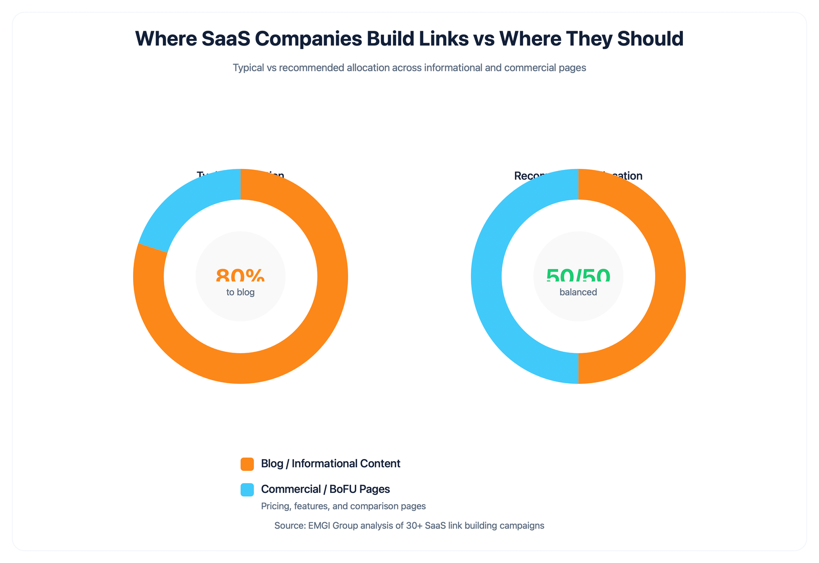 What to do instead: Every link building campaign should include a mix of targets. Yes, build links to flagship blog content. But also build links directly to comparison pages, feature pages, and use-case pages where possible. This is harder and requires more creative outreach, but the revenue impact is incomparably better.